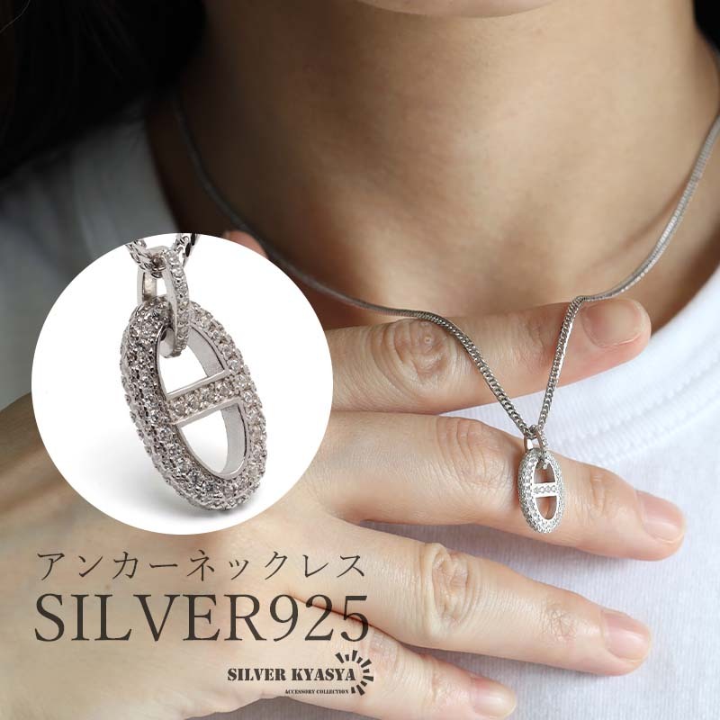 - 小ぶり アンカーネックレス キラキラ シルバー パヴェネックレス ジュエリー ネックレス シルバーチェーン ダブル喜平チェーン