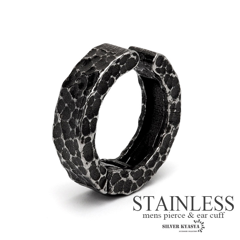 - ステンレス イヤーカフ ブラック 燻し 槌目 耳飾り イヤークリップ EARCUFF 穴不要 片耳一点