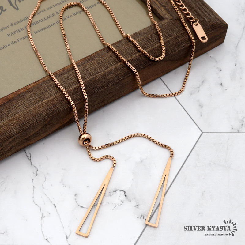 - レディースネックレス ベネチアンチェーン Y字 ステンレス トライアングル メッキ ローズゴールド ベネチアン 金属アレルギー