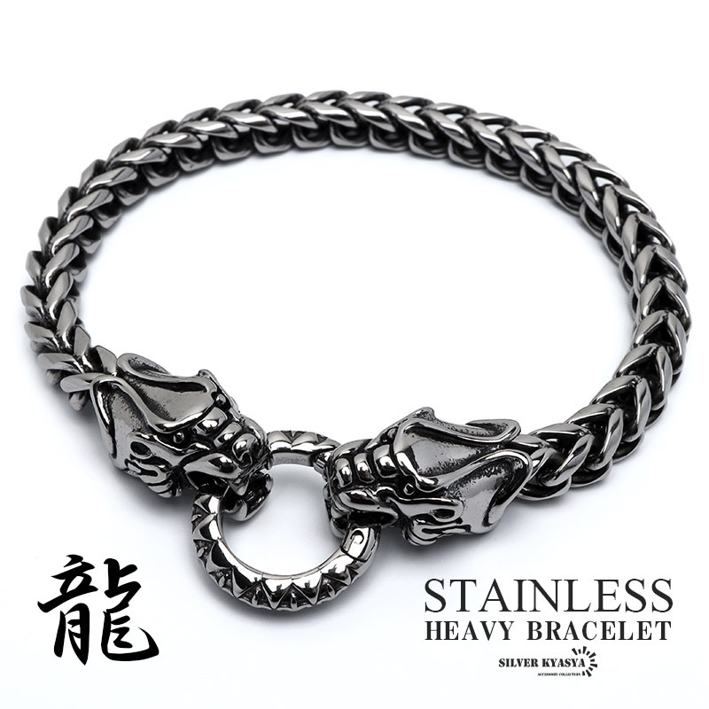 > ステンレス ドラゴンブレスレット 龍 シルバー ヘビーブレスレット ごつめ フランコチェーン 男性 メンズ 金アレ対応
