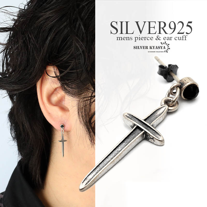 - シルバー925 ピアス メンズ 剣 ソード スタッドピアス 銀 金属アレルギー 片耳一点