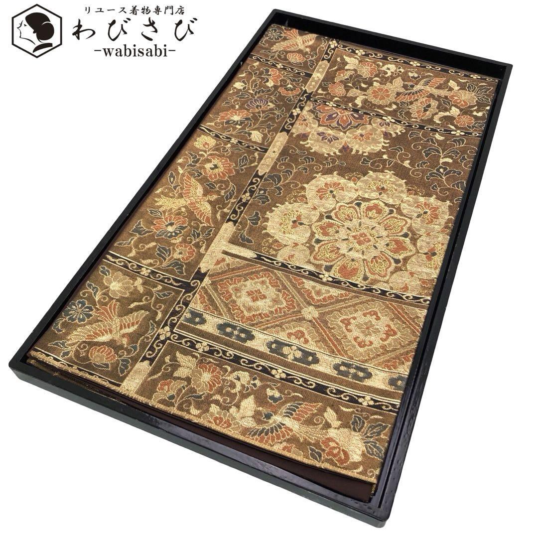 - 袋帯 煌びやかな華模様 花唐草 鳥 金糸 黄唐茶色 フォーマル O-4639