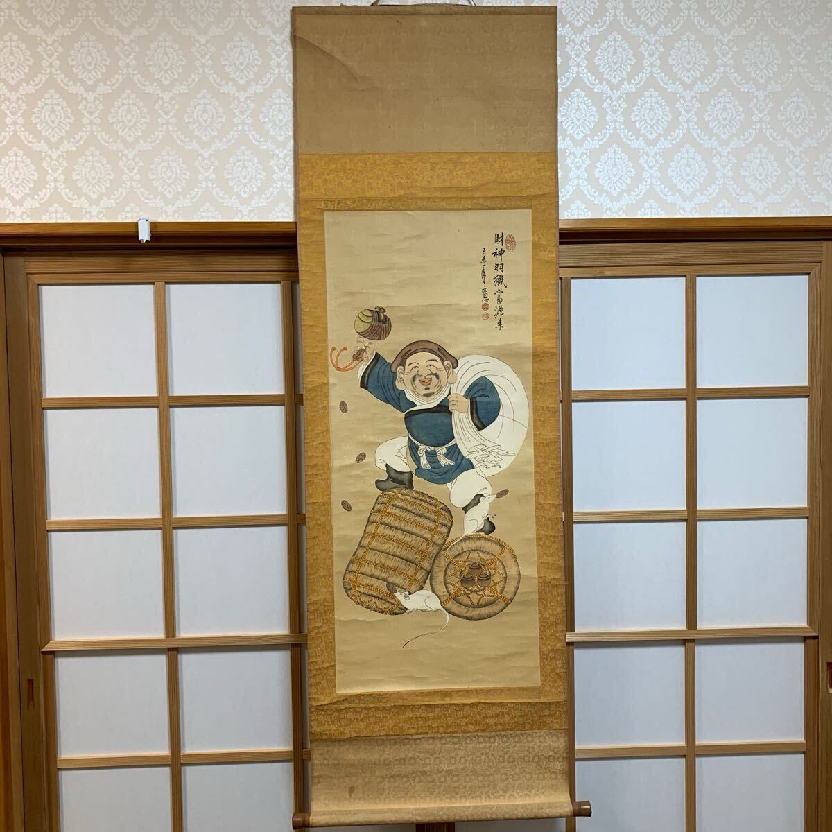- 掛軸 模写 福神図 木箱無し 紙箱有り No114