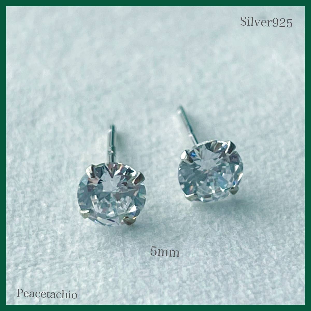 > ピアス Silver925 シルバー 1粒 CZダイヤ アレルギー対応 5mm プレゼント プチギフト 贈り物 収納ケース付