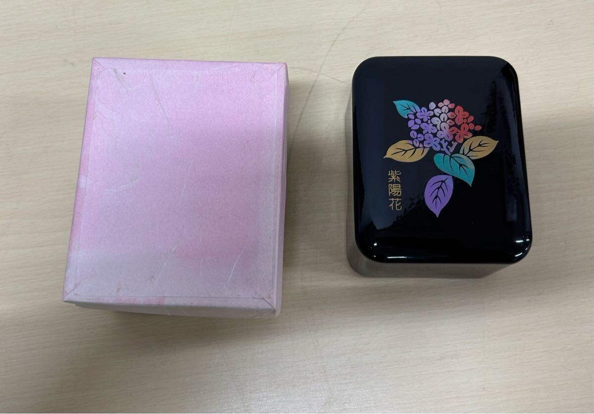 - 小物入れ 紫陽花柄 あじさい 昭和レトロ 漆器 漆塗り 小箱 工芸品 ホテル 高州園 和風 和室 箱付き