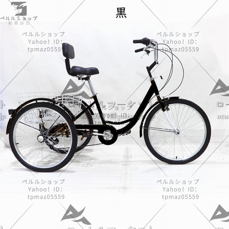 - 三輪自転車 24インチ 高齢者用 大人用三輪車座席高さ調節可能 自転車 アショッピングバスケット付き