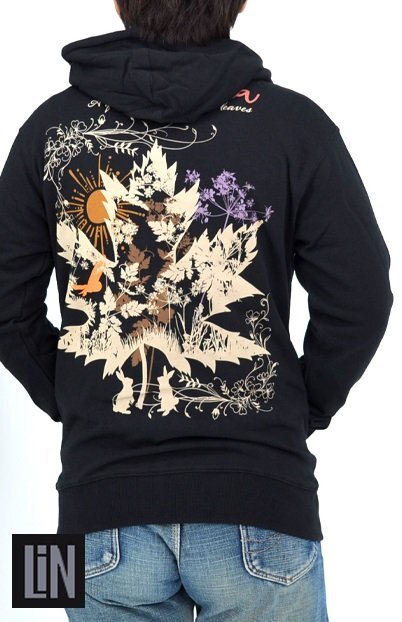 - 黒菟華 楓の中の静かな森パーカー◆LIN ブラックXLサイズ AL-759084 和柄 うさぎ ウサギ スウェット ユニセックス