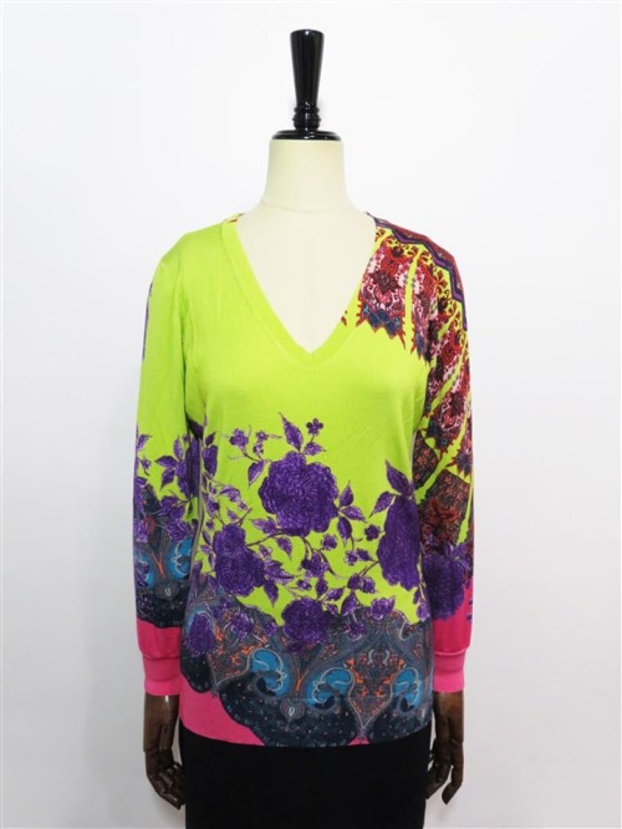 - 64349 ETRO / エトロシルク混 プリント Vネック ニット