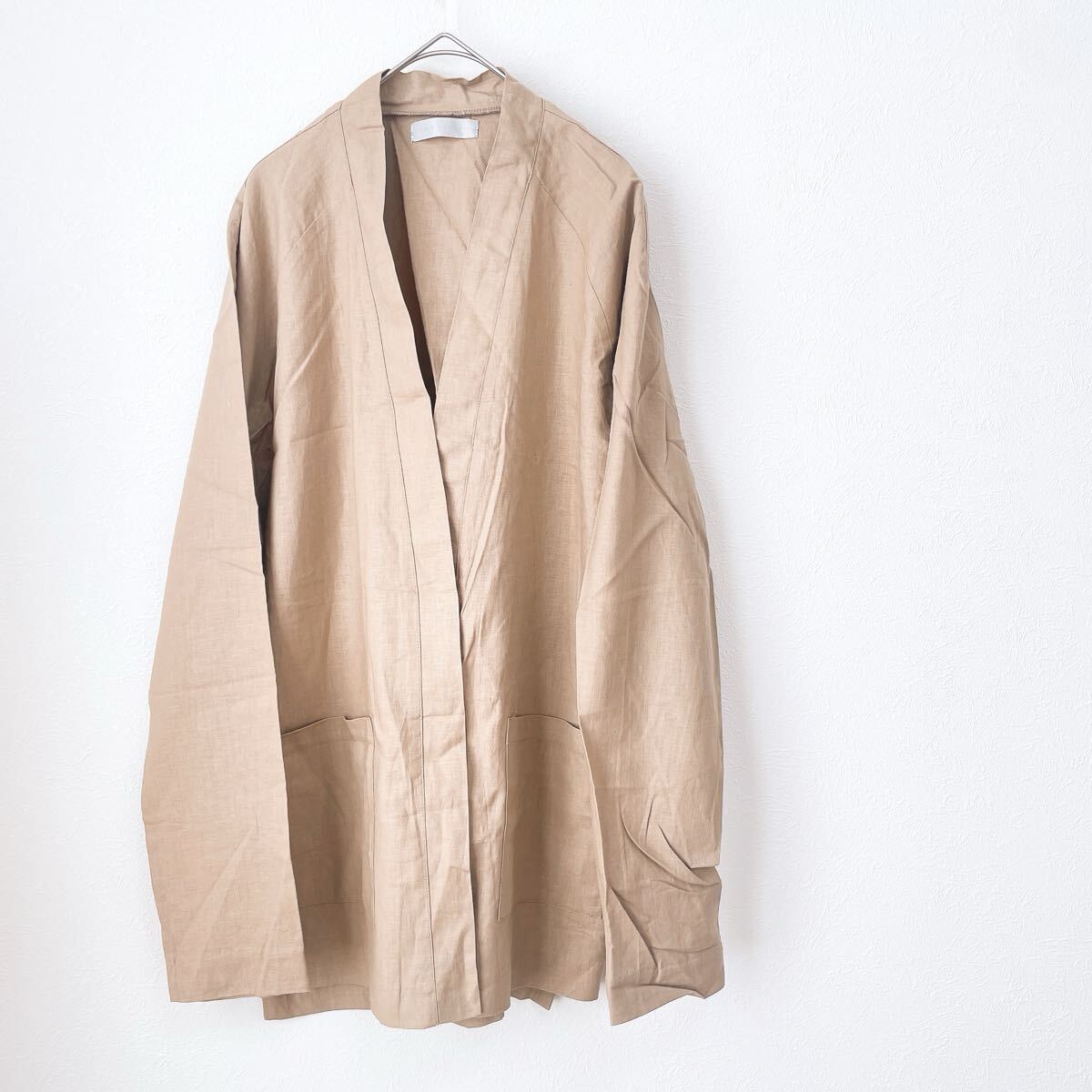 > 新品センスオブプレイス バイ アーバンリサーチSENSE OF PLACE BY URBAN RESEARCHリネン オープンカーディガン長袖シャツMサイズ麻ベージュ