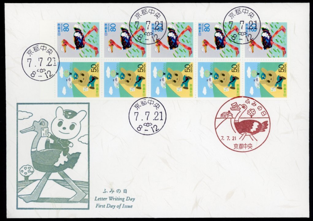 - z161 【FDC】1995ふみの日ペーン[京都中央/7.7.21/鳴美版](解説書なし)