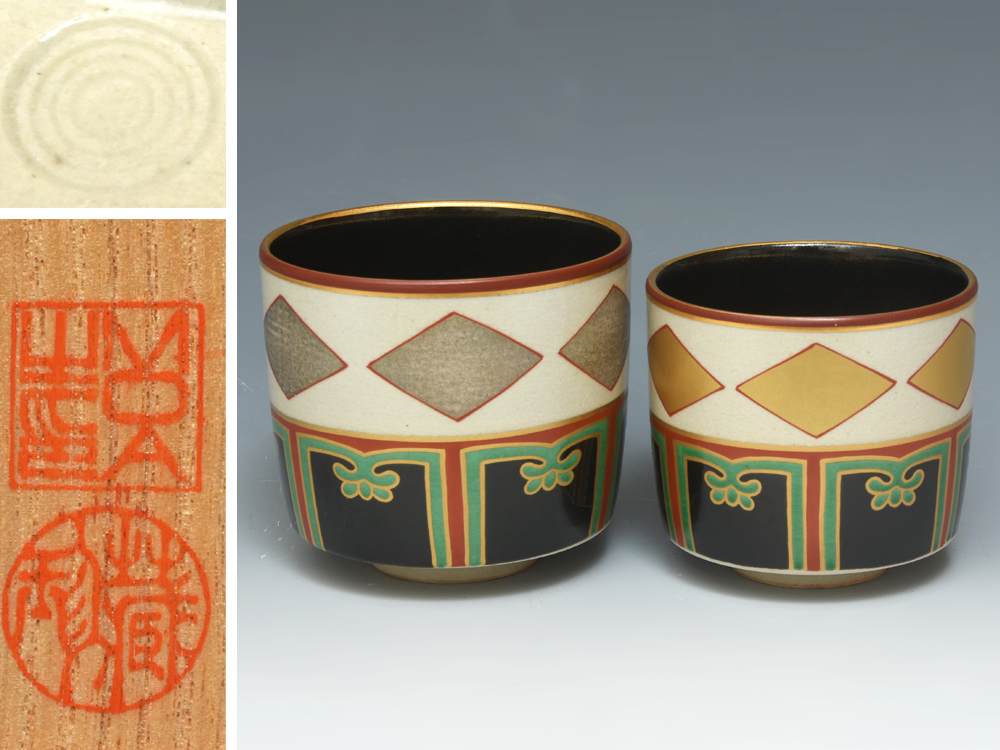 - 仁清写 色絵 金銀菱重 茶碗 五代 小泉蔵珍(造)共箱 しおり MOA美術館 茶道具 蔵珍窯 京焼 陶磁器 z9360t
