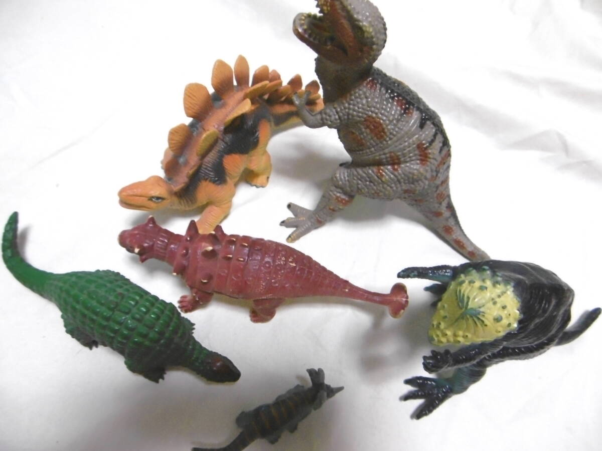 ティラノサウルス 15×21 (指 折れ)パキケファロサウルス 13×20 アンキロサウルス 6×16ステゴサウルス 8×20ノドサウルス? 6×15トリケラトプス 4×8以上 6体ですが 種類など違うかもしれませんそれぞれ 汚れ キズ 破損しているものもあります中古品ですので 細かいことが気になる神経質な方はご遠慮ください。