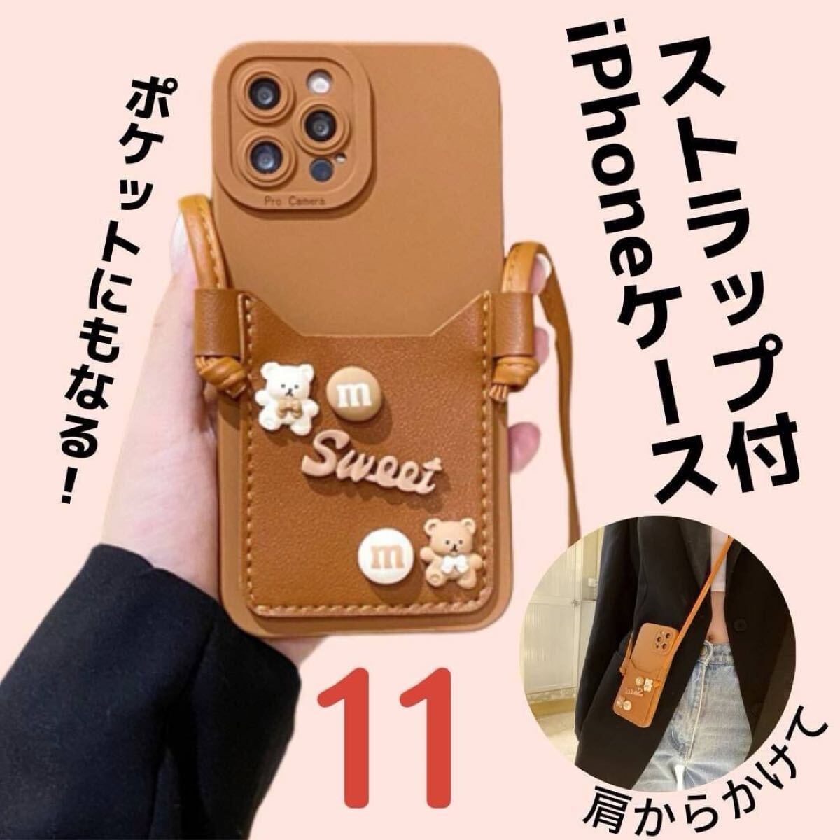 - くま iPhone11 ケース 落下防止 肩紐 ストラップ 紐 オシャレ