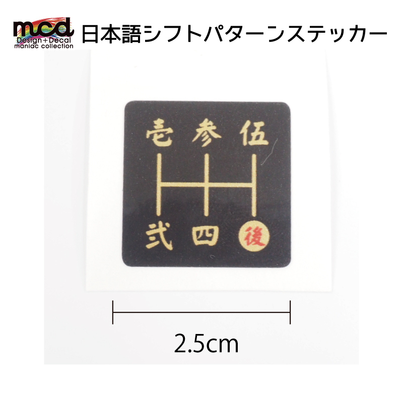 > シフトパターン シール ステッカー 漢字 2.5cm 四角タイプ 1枚 シフトノブ MT車 5速用 マニュアル 黒金文字 R赤 和風 いすゞ 三菱 マツダ