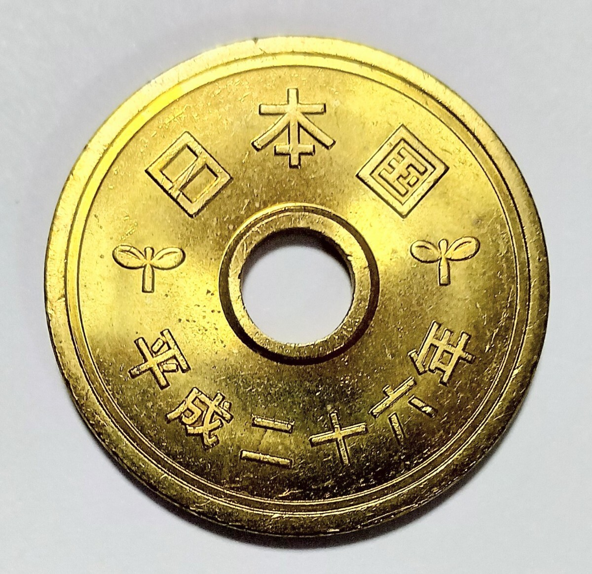 - ■《超美品・超綺麗》★平成26年★5円玉硬貨★黄銅貨★ゴシック体★2014年★ヴィンテージコイン★素材(品位):銅 亜鉛★重さ:3.75g