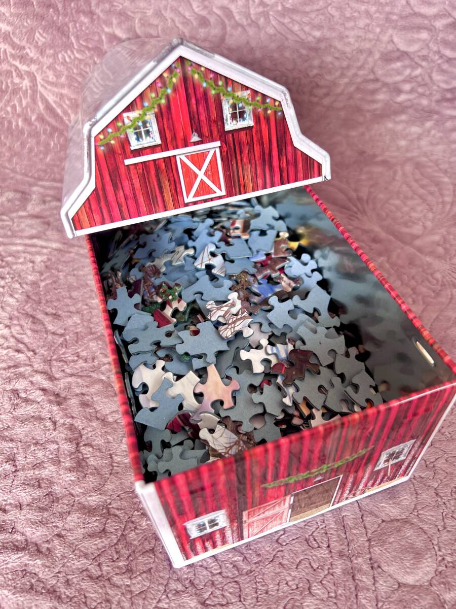 - クリスマス・ジグソーパズル550ピース・eurographics社・christmas barn・納屋の形の缶入り
