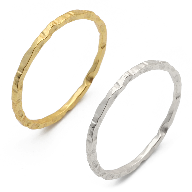- (ゴールド、9号) シルバー925 リング 指輪 シルバー 極細 シンプル でこぼこ 重ね付け 18KGP ゴールド