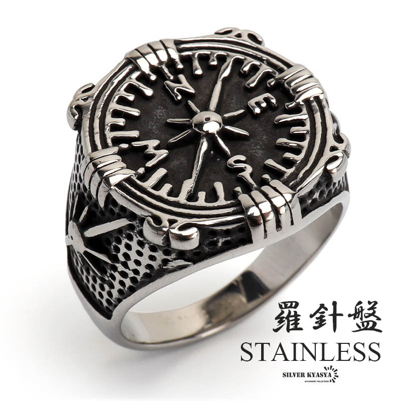 - (19号) ステンレス 羅針盤リング 印台リング コンパスリング シグネットリング シルバー メンズ 金属アレルギー対応