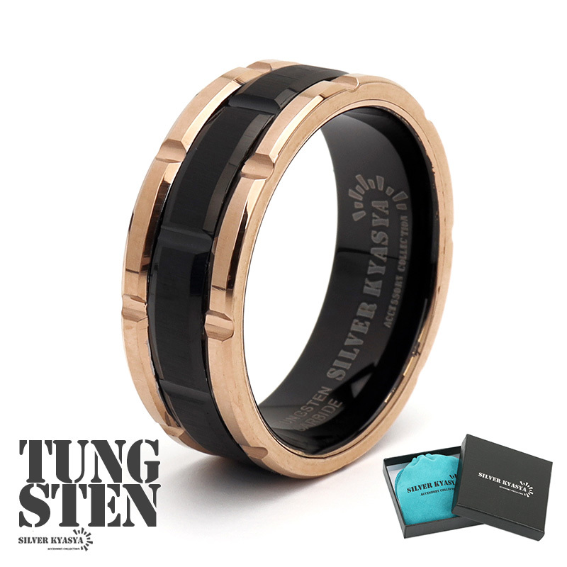 > (29号) タングステン ごつめ リング メンズ 指輪 ローズゴールド ブラック ハード つけっぱなしOK 専用BOX オリジナル