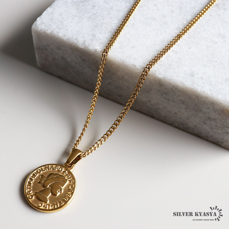 - (45cm) コインネックレス 喜平チェーン アンティーク 硬貨 ネックレス ゴールド 18K ステンレス 金属アレルギー対応