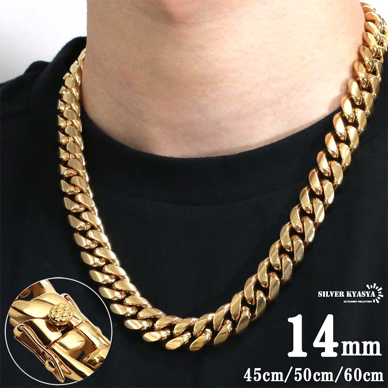 - (60cm) 316L 太め 幅14mm メンズネックレス 18k gp 金 ゴールド 喜平チェーン 喜平ネックレス