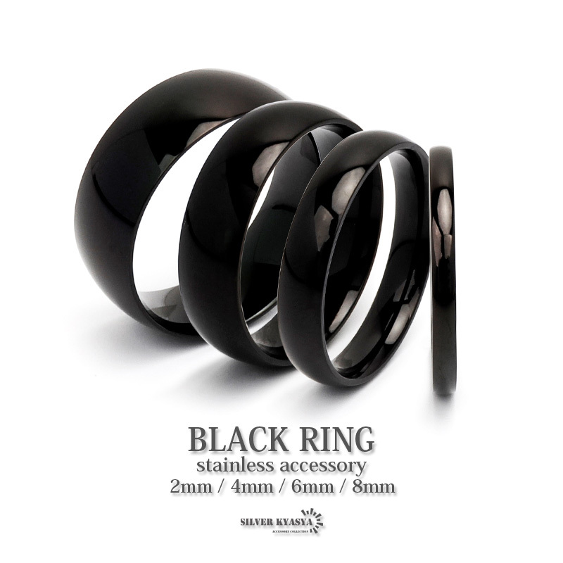 - (8mm幅、31号) ブラックリング シンプルリング ステンレスリング 黒 指輪 甲丸リング ドーナツ型 金属アレルギー対応