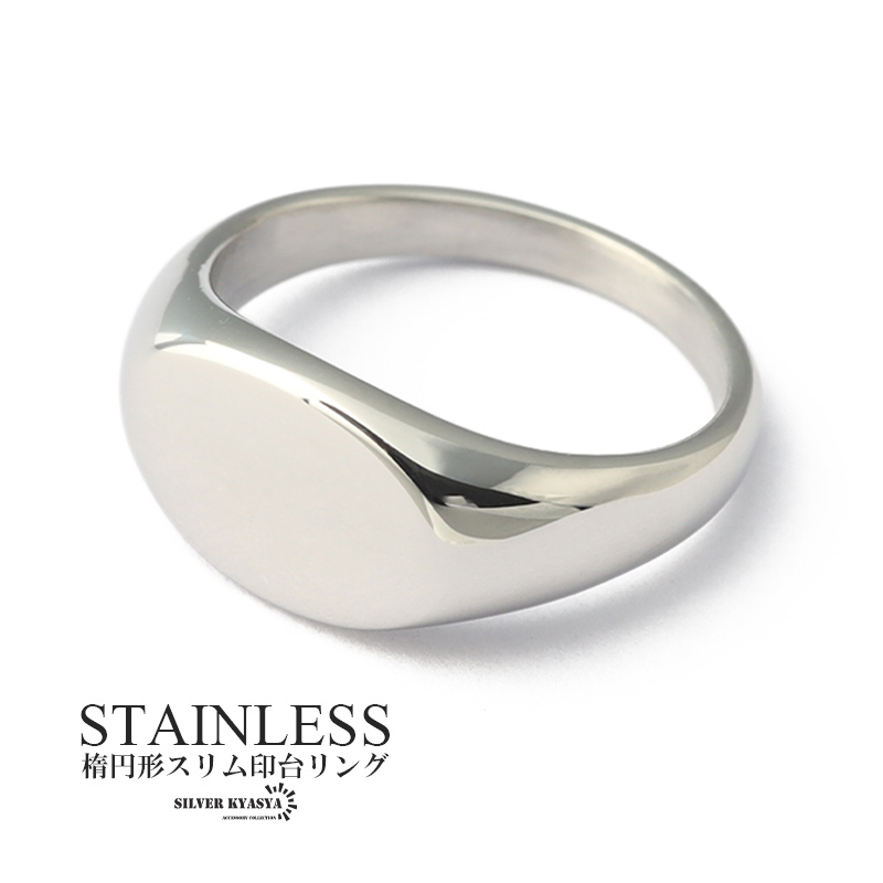 - (12号) シンプル 印台リング メンズ レディース 指輪 シルバー 銀色 細身 楕円