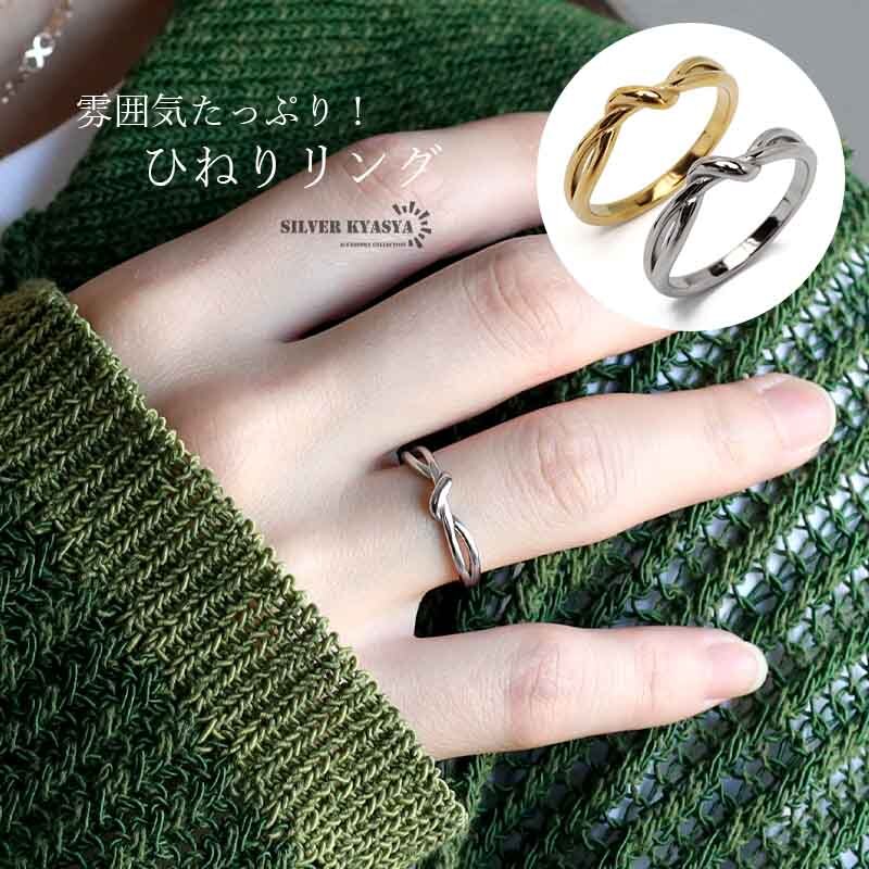 - (ゴールド、14号) ひねりリング ツイストリング 指輪 18KGP ゴールド ステンレス レディース 金属アレルギー対応