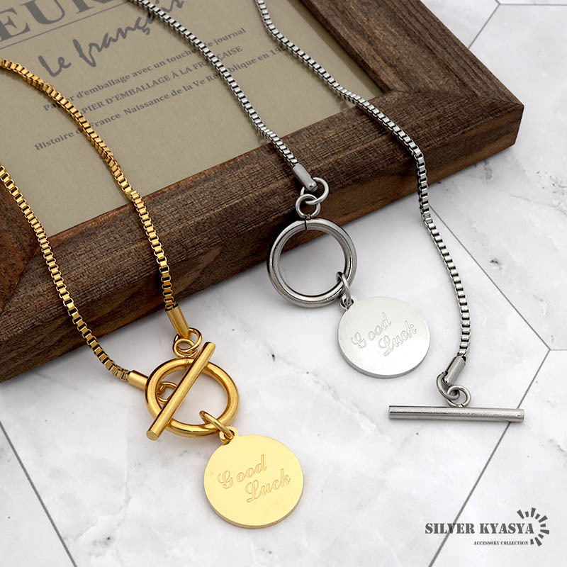 - (シルバー) レディースネックレス ベネチアンチェーン チャーム コイン 英字 ステンレス 18k マンテル