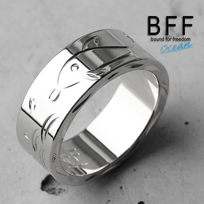 - (21号) BFF ブランド ドルフィン 幅8mm 平打リング シルバー 銀色 スクロール ペア 手彫り 専用BOX付属