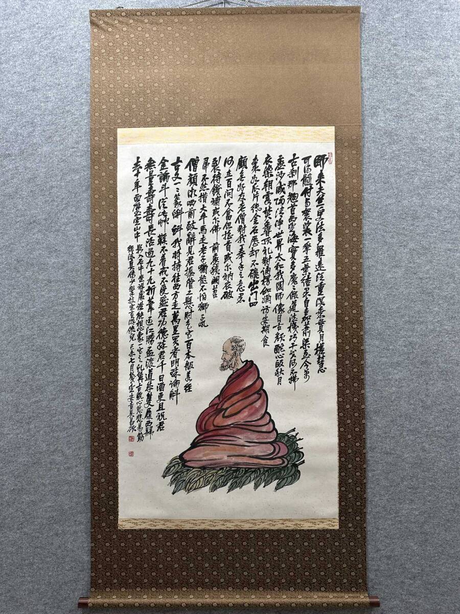 > 古美術 掛け軸 中国・近現代 「呉昌碩書」 紙本 【達磨図】 立軸 書道 巻き物 肉筆保証 唐物 古画 画心64.5x112cm LT-250229