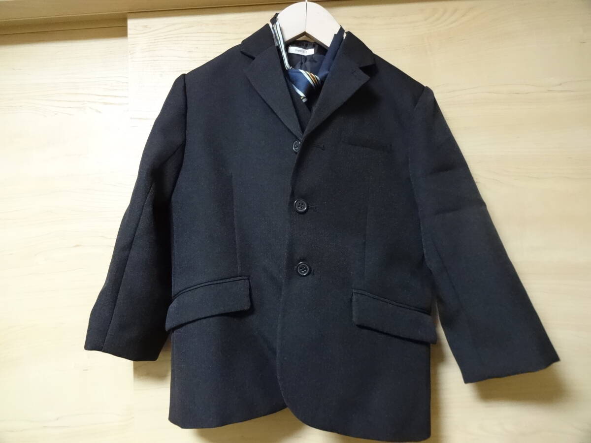 > petit-f 男児スリーピース サイズ120A R8232 黒ツイード風 ジャケット・ベスト・半パン 入学式 卒業式 レターパックプラス