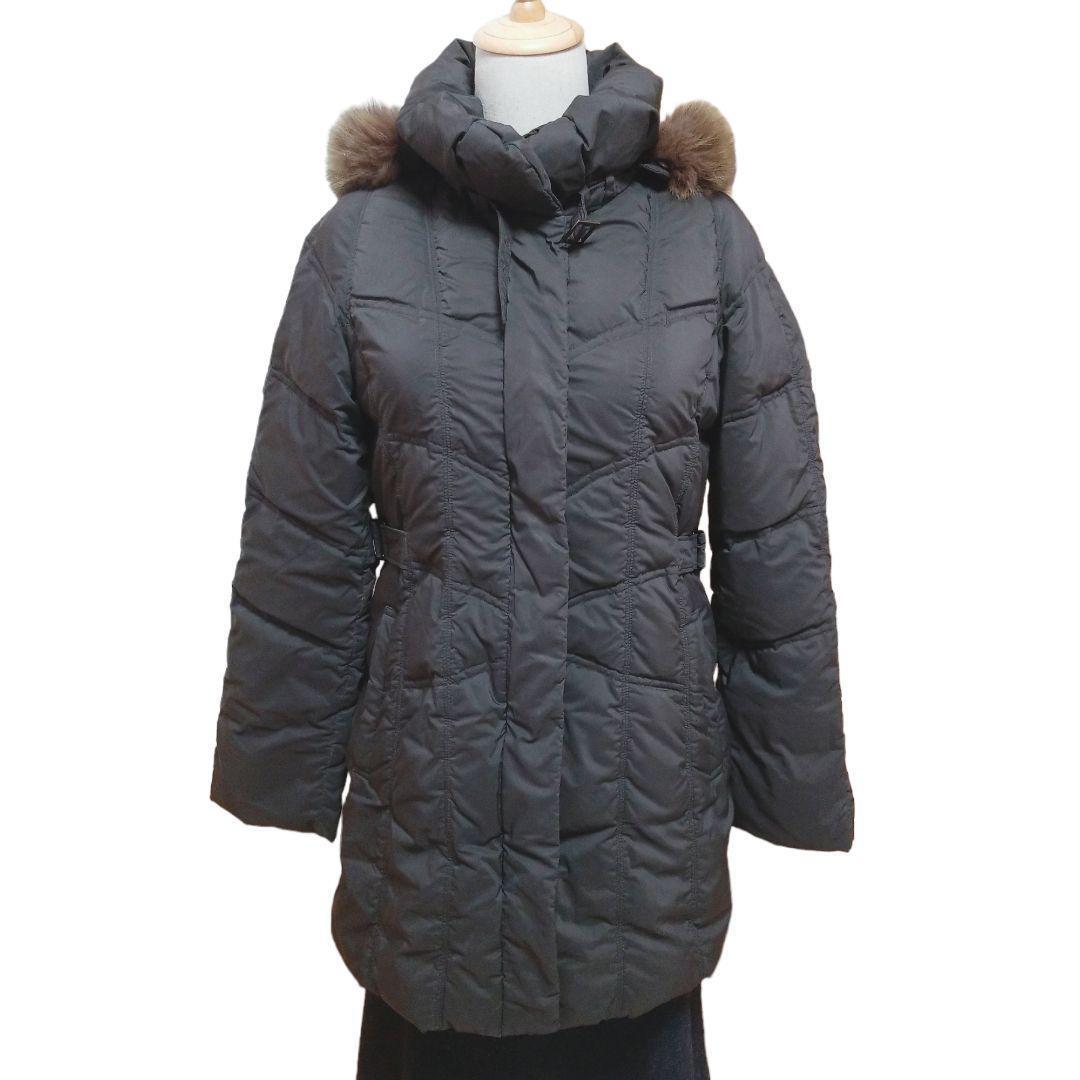 > サンヨー SANYO ブルーフォックスファー付きフード ダウンコート ロングジャケット ウォッシャブル レディース 11 M相当 ブラック 黒 秋冬