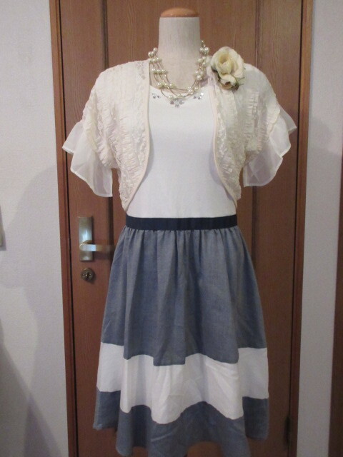 > Z)■ブランド品【 ef-de エフデ】&【ナイガイ】ポンチョカーデはおまけ!■綿麻■スカート3段/グログランもポイント!ワンピース