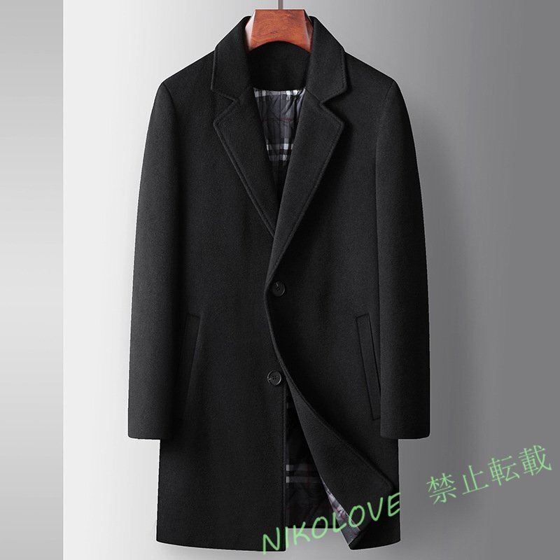 > ☆新品ビジネスコート メンズ テーラードジャケット 紳士スーツコート 厚手 ダウン綿ジャケット ウール ブラック M LK295