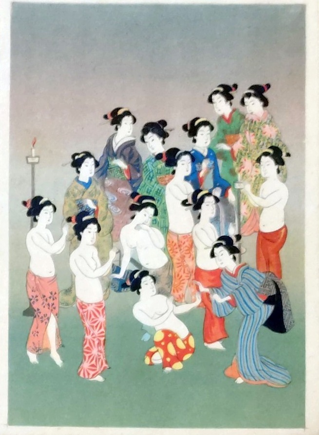 - f25020737〇一枚摺物 B6サイズ 彩色木版画 浮世絵 機械摺 昭和初期〇和本古書古文書