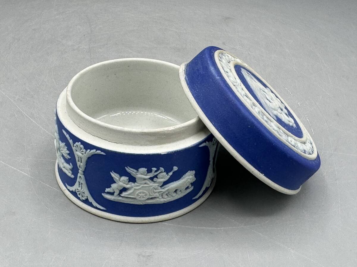 - ウェッジウッド ジャスパー ポートランドブルー 蓋付 小物入れ ジャスパーウェア (765)