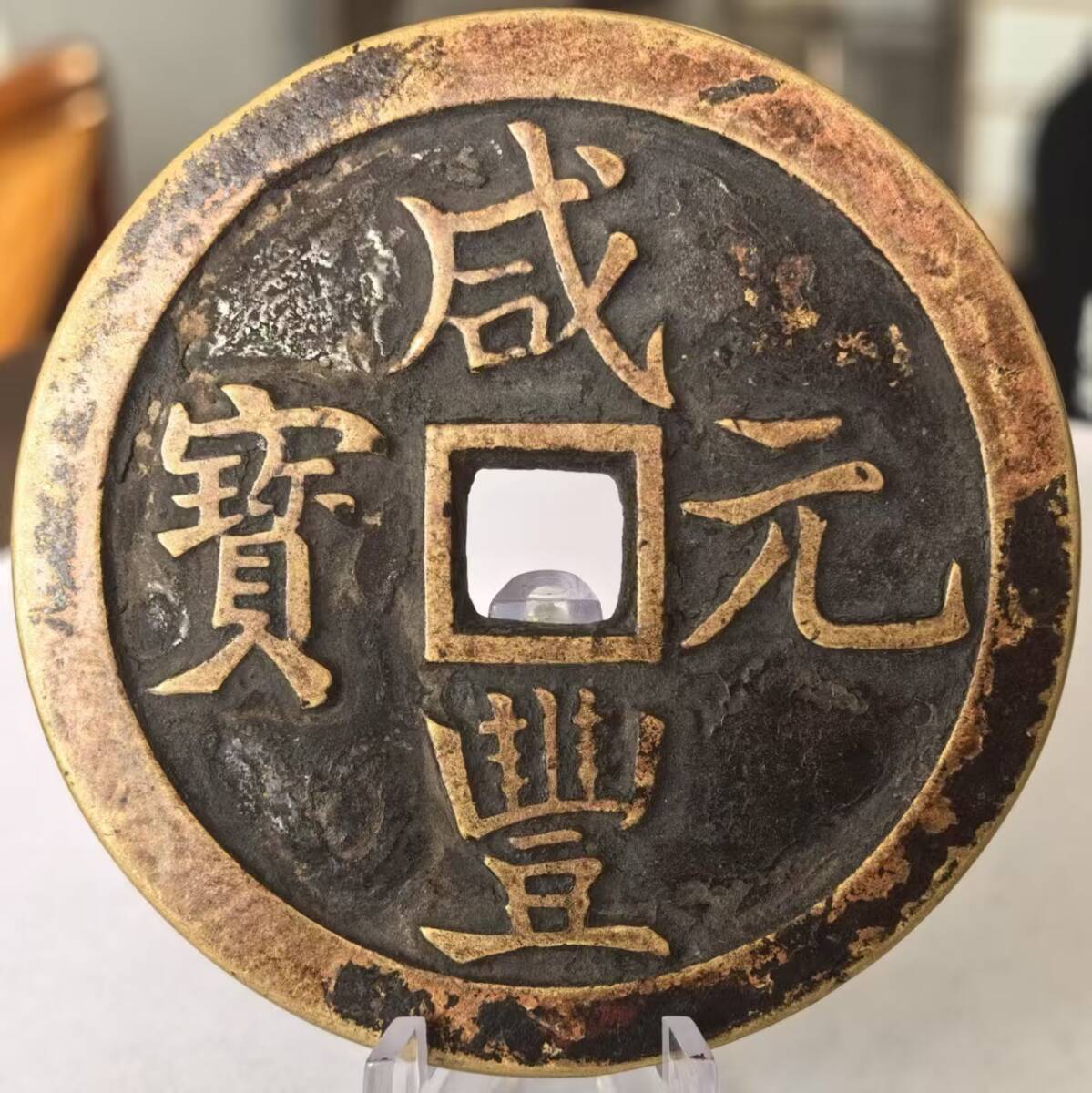 - 古錢 銅幣 銅錢 清 咸豐元寶 當千 時代物 中国古錢 收蔵品 直径:61mm 重量:70g
