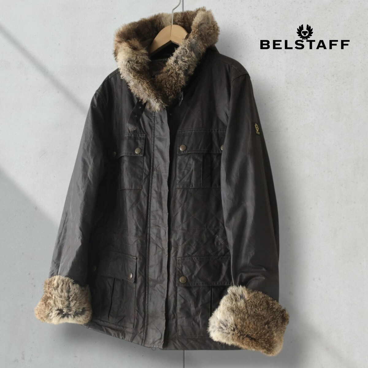 > 【Special】イタリア製 Belstaff GOLD ベルスタッフ オイルドキルト ジャケット フード/リアルファー ブラウン46(XL) レディース