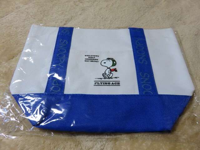 > SNOOPY Snoopy スヌーピー PEANUTS ピーナッツ バッグ かばん 手提げバッグ ランチバッグ サイズ300-200-110㎜ 白・青 未開封 未使用