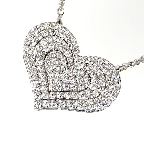- K18WG ネックレス メレダイヤ入りハート型ペンダント付 D0.50ct 11.7g