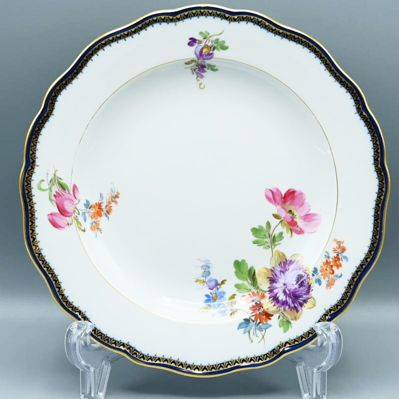 > M02-t024 Meissen マイセン Aカンテ ベーシックフラワー 四つ花 マリーゴールド プレート 中皿 約20cm コバルト 金彩 一級品