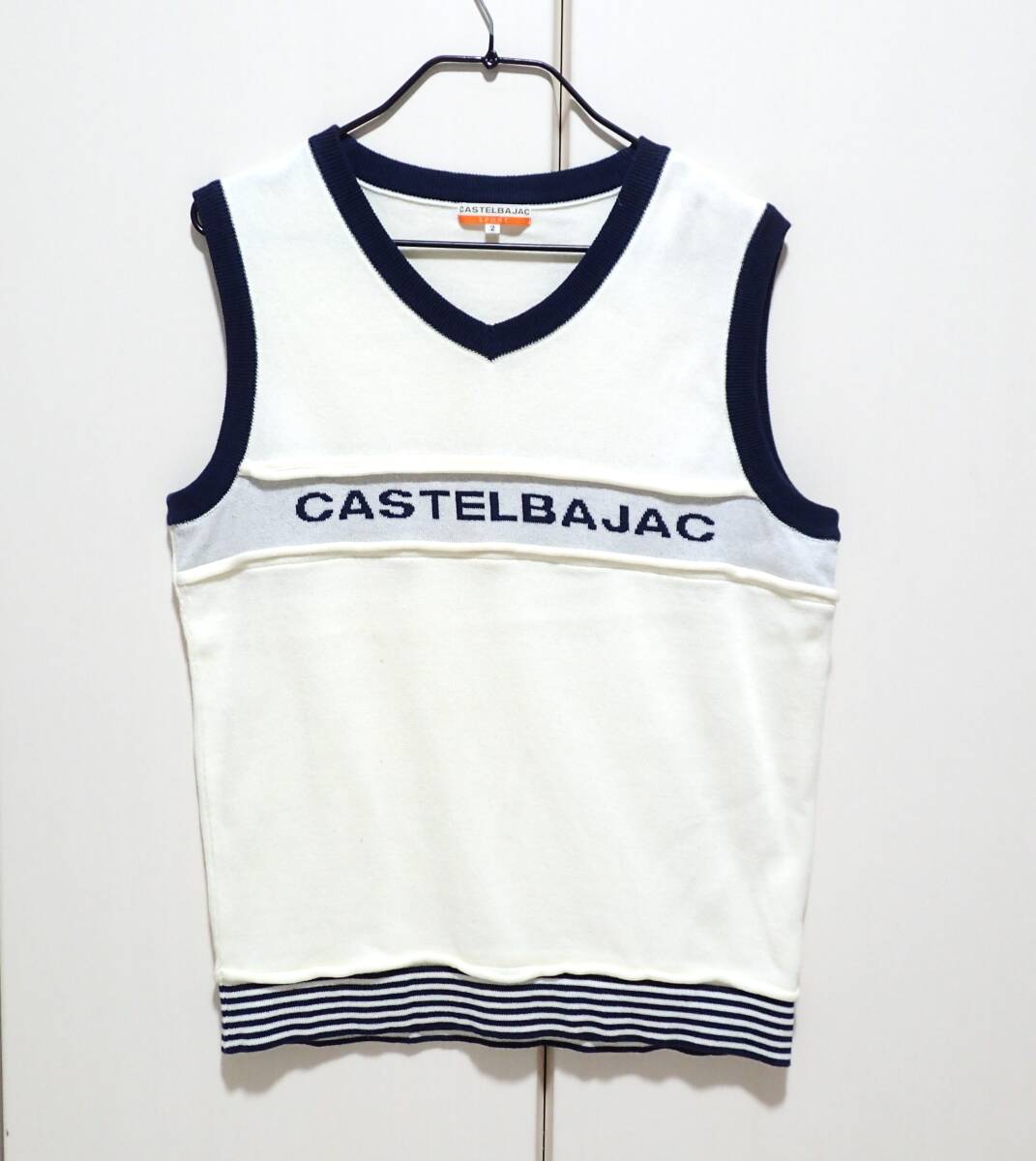 - ☆CASTELBAJAC ☆カステルバジャック ☆㈱ライカ ☆日本製 ☆ビッグロゴ ☆Vネック ☆ニットベスト ☆オフホワイト ☆サイズ2