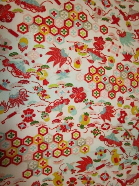 - E-86★宝尽くし*隠れ蓑*吉祥模様*綸子*古布はぎれ★文化人形/一閑張り/吊るし雛/市松人形アンティーク/ちりめん細工
