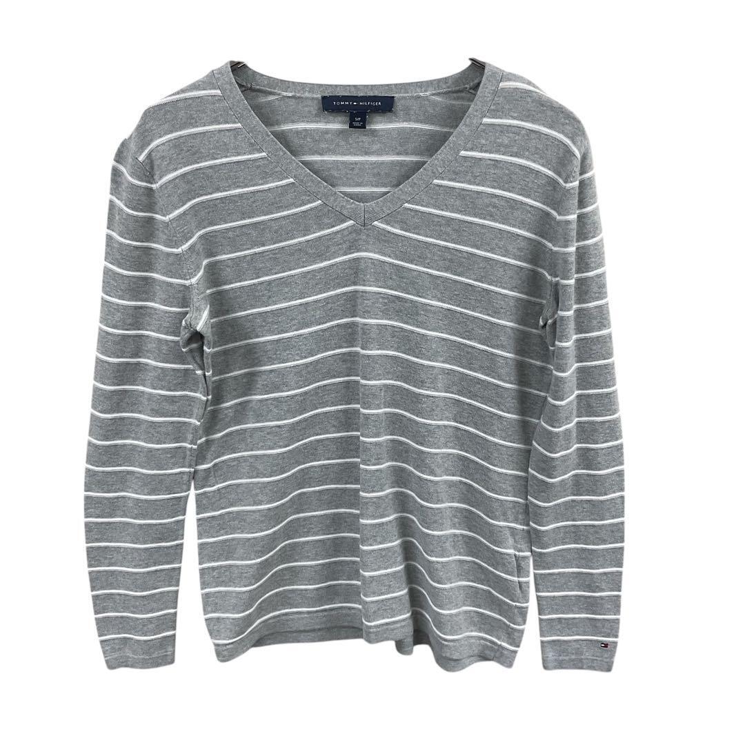 - トミーヒルフィガー レディースカットソー グレー ボーダー Sサイズ【702】