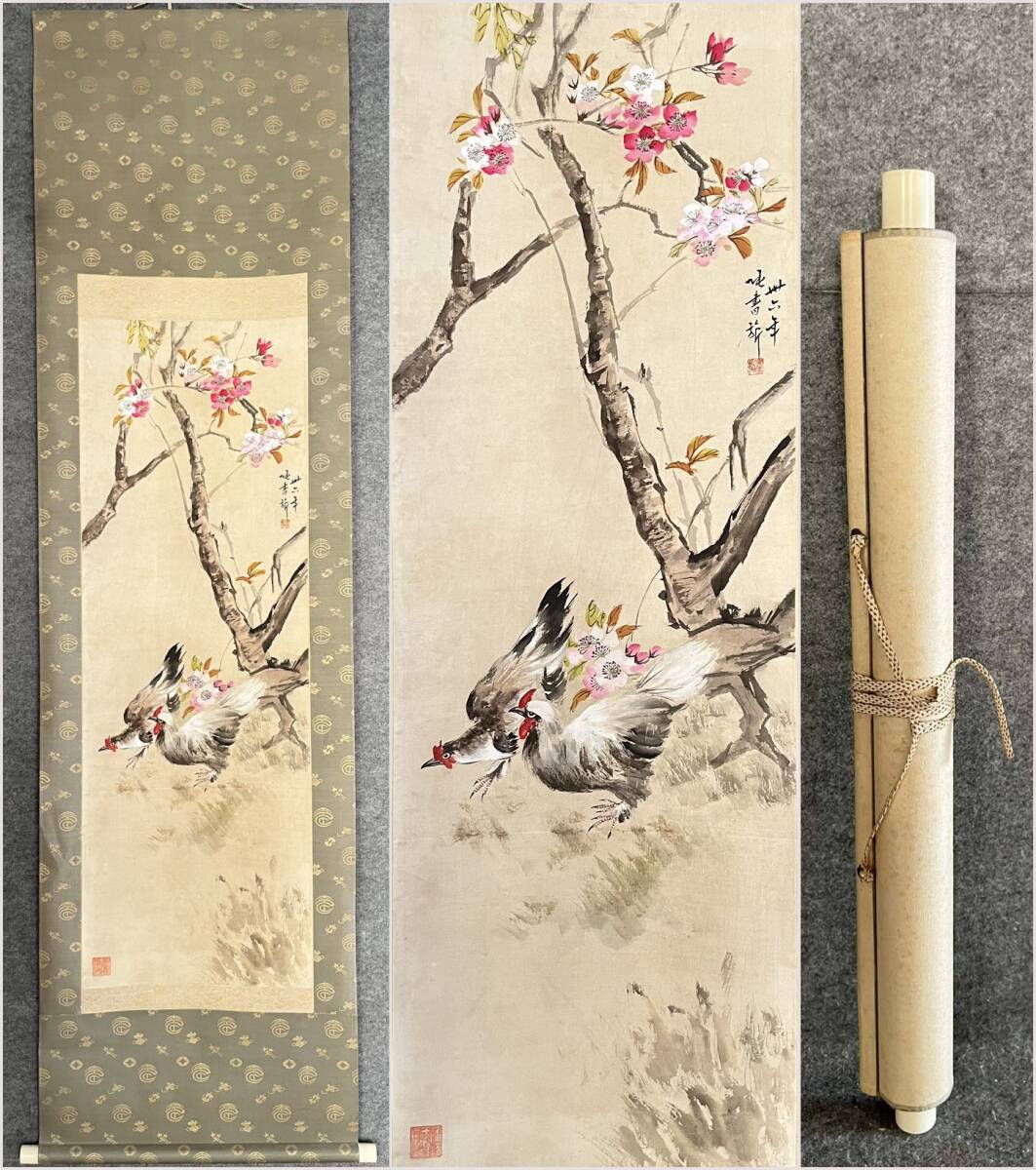 > 古美術 掛け軸 中国・近現代 「張書旗書」 紙本 【双吉図】 立軸 書道 巻き物 肉筆保証 唐物 古画 画心105x36cm LT-250295