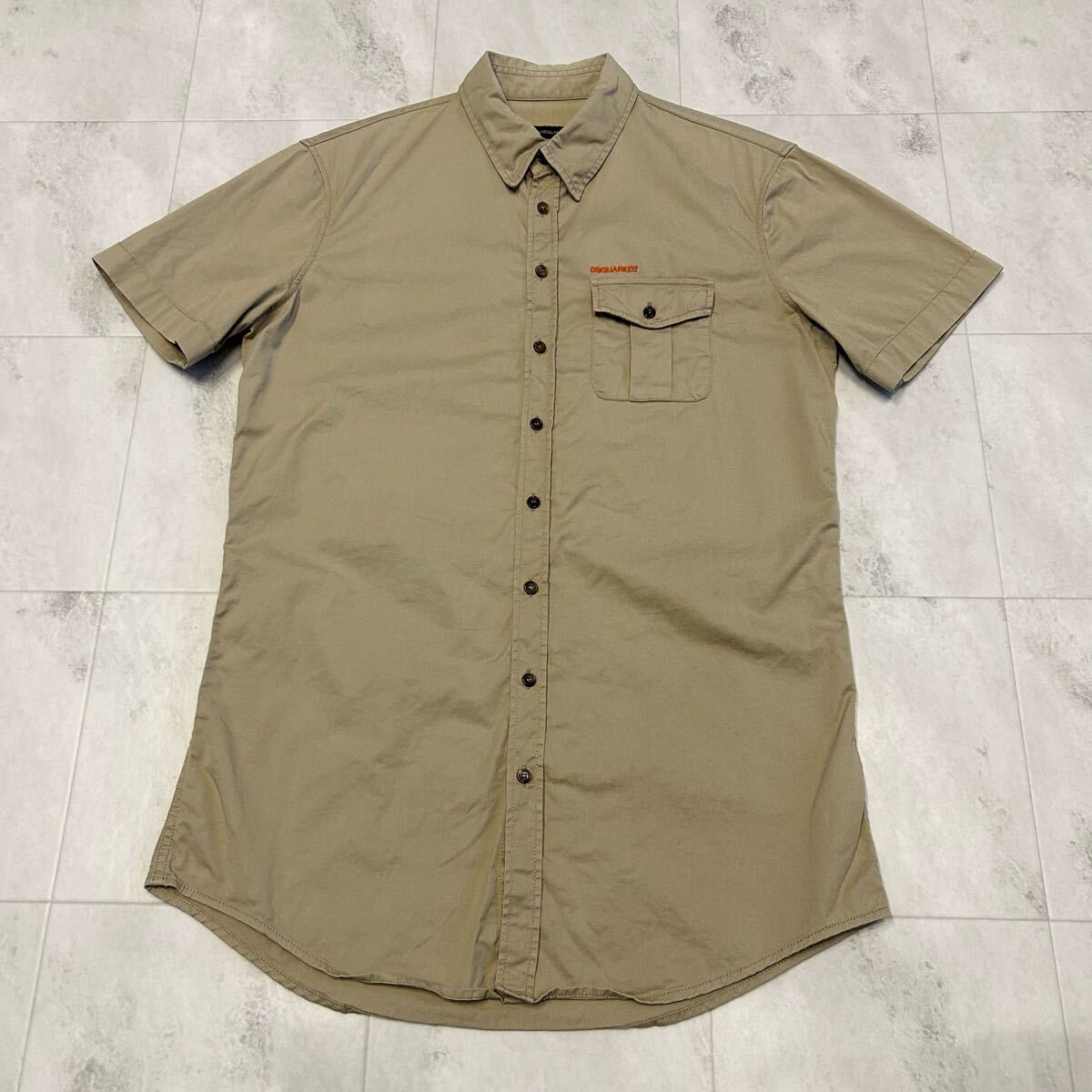 - ITALY製 DSQUARED2 ロゴ 刺繍 ワークシャツ 半袖シャツ size46