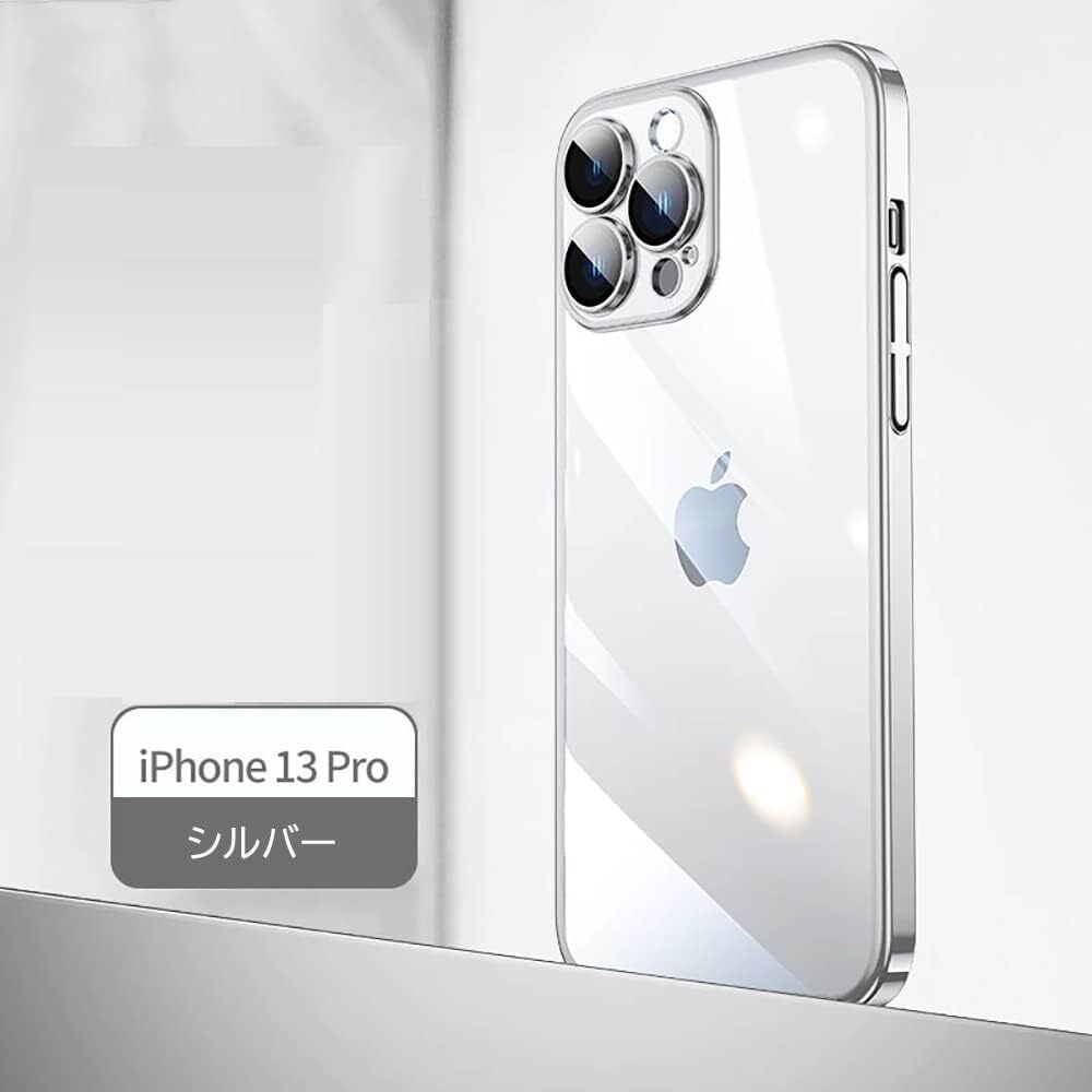 - iPhone 13Pro クリアケース メッキ ハードケース 指紋防止 汚れにくい スリム カバー 薄型 耐衝撃 6.1インチ シルバー I219