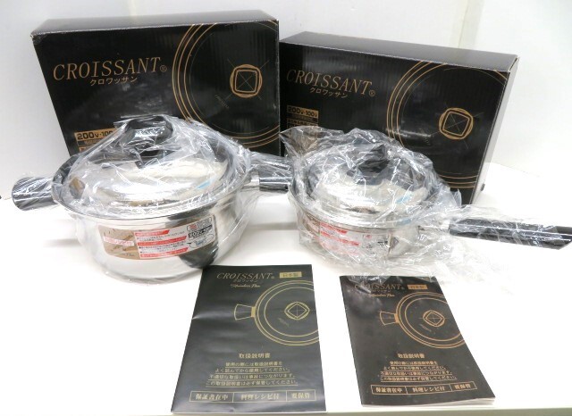 > [か19] 未使用 CROISSANT クロワッサン 両手鍋 深型22cm & 片手鍋 18cm ウォーターシール効果 ガス IH レシピ付き取扱説明書付き