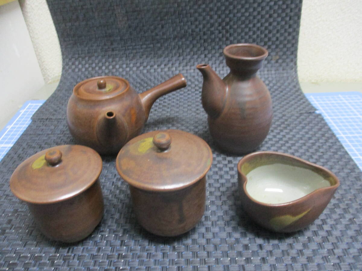 - 陶器 茶器 酒器セット 在銘(急須・夫婦湯呑茶碗・徳利・ミルク入れ?) 検 アンティーク、コレクション 工芸品 陶芸 日本の陶磁